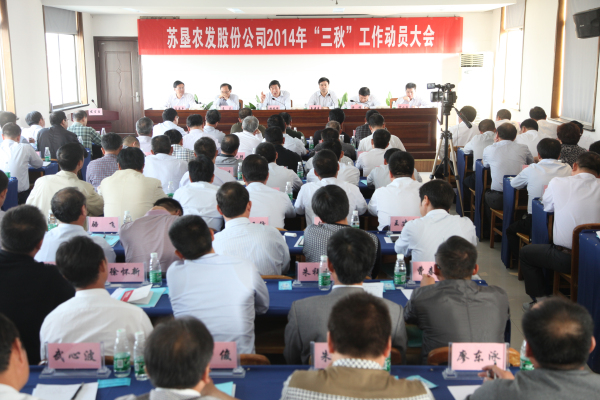 會(huì)議根據(jù)整體工作安排,圍繞今年“三秋”工作特點(diǎn),從農(nóng)業(yè)生產(chǎn)管理和生產(chǎn)技術(shù)的角度,就今年“三秋”工作進(jìn)行了全面、細(xì)致的布置。公司各大片區(qū)的代表——黃海、東辛、新曹、三河、南通等5家分公司,圍繞如何做好今年“三秋”工作進(jìn)行了表態(tài)發(fā)言;蘇墾農(nóng)發(fā)股份公司總裁姜建友,分別與各單位總經(jīng)理簽訂了2014年“三秋”工作目標(biāo)任務(wù)責(zé)任狀。會(huì)議還下發(fā)了《2014年“三秋”工作考核評(píng)比辦法》、《2014年水稻收購工作意見》和《種植業(yè)基地拓展及管理暫行辦法》。