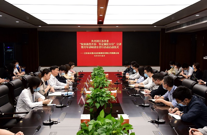 5月14日,蘇墾農(nóng)發(fā)組織觀看共青團(tuán)江蘇省委“綻放戰(zhàn)役青春堅(jiān)定制度自信”宣講暨青年講師團(tuán)全省行活動(dòng)啟動(dòng)儀式。公司駐寧子公司、總部團(tuán)員青年共60人參加。公司黨委委員、工會(huì)主席倪志愿出席觀摩會(huì)并講話。