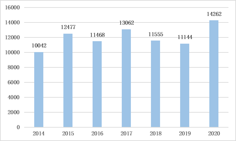 2014-2020年我國糧食進(jìn)口量(萬噸)