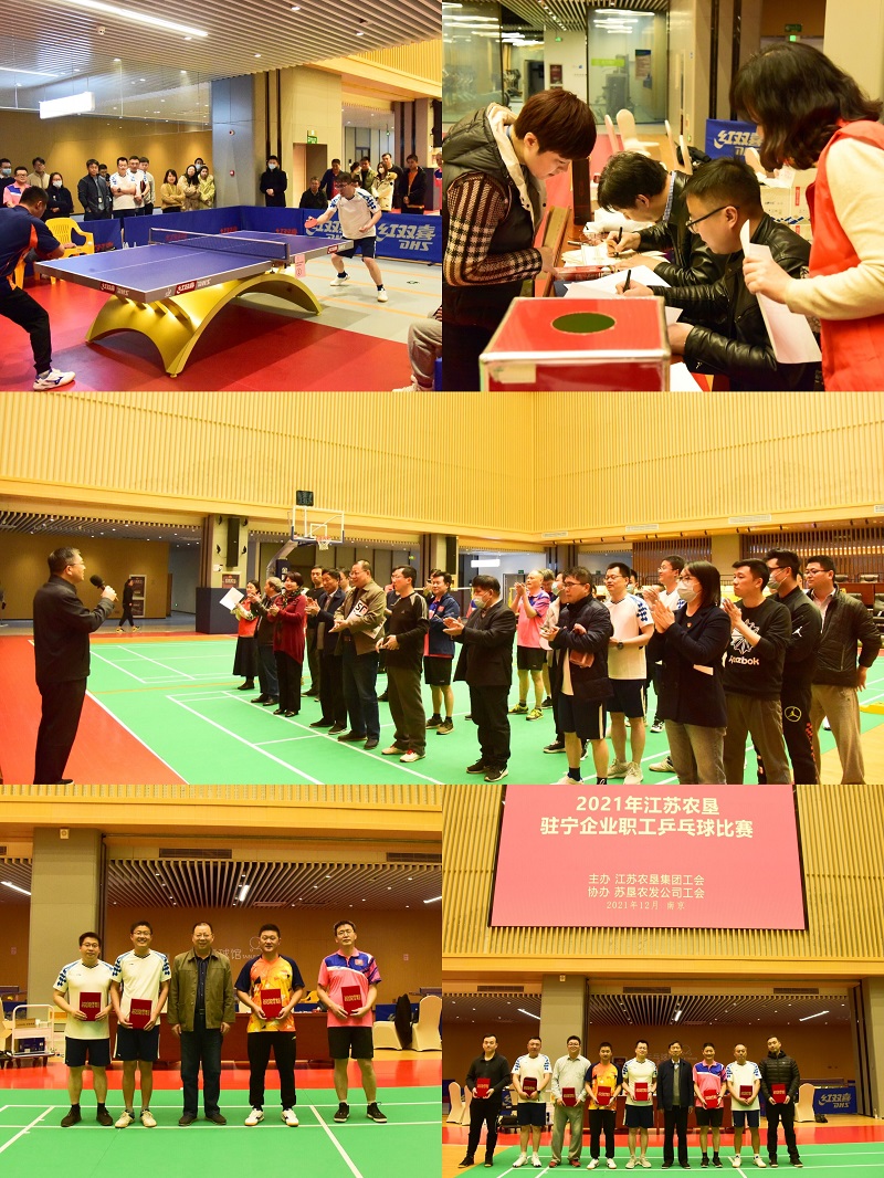 12月17日,由江蘇農(nóng)墾集團(tuán)有限公司工會主辦,蘇墾農(nóng)發(fā)公司工會協(xié)辦的2021年江蘇農(nóng)墾駐寧企業(yè)職工乒乓球比賽在蘇墾大廈職工活動中心圓滿落幕。集團(tuán)公司黨委委員、工會主席楊義林出席活動并講話。集團(tuán)公司工會副主席姚海洪主持活動,共有11家駐寧企業(yè)單位32名選手在此次男子單打比賽中揮拍競技,一決高下。蘇墾農(nóng)發(fā)乒乓球隊(duì)共派出8人參賽,其中2人斬獲冠軍和3人奪得季軍。