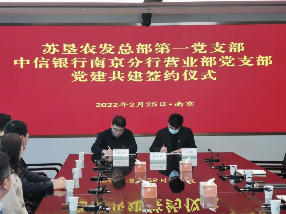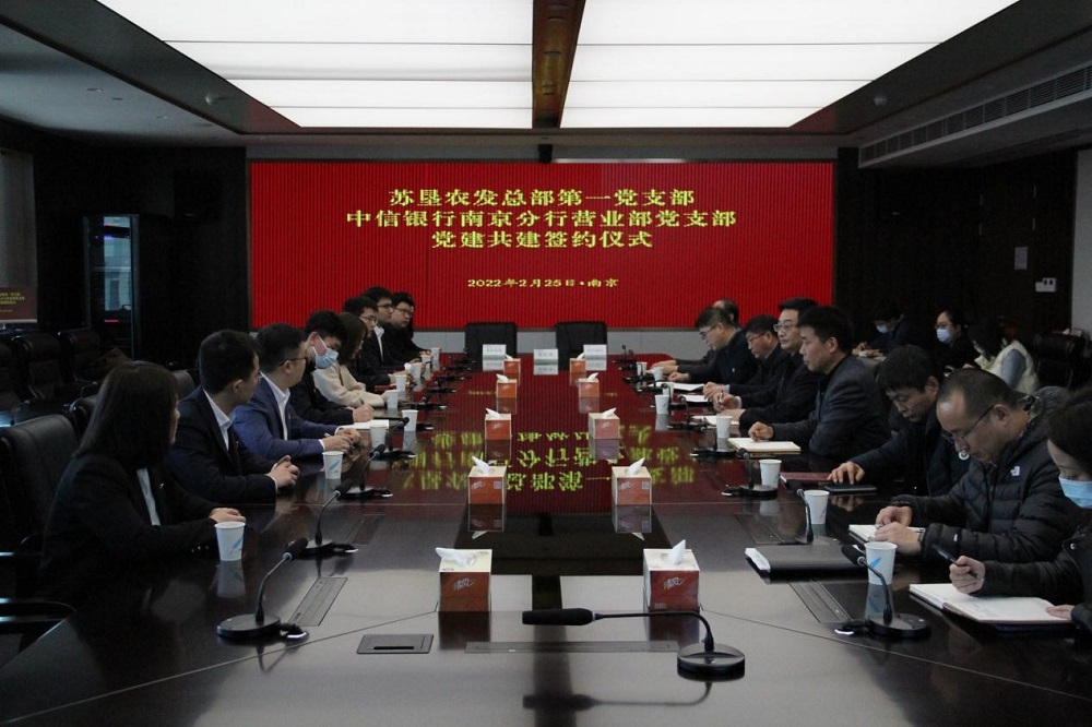 2月25日,蘇墾農(nóng)發(fā)總部第一黨支部與中信銀行南京分行營(yíng)業(yè)部黨支部舉行黨建共建簽約儀式。簽約前,蘇墾農(nóng)發(fā)總部第一黨支部書(shū)記劉剛和中信銀行南京分行營(yíng)業(yè)部黨支部書(shū)記張磊各自介紹了支部基本情況,并就黨員隊(duì)伍建設(shè)、黨建工作開(kāi)展以及黨建業(yè)務(wù)融合促進(jìn)等方面內(nèi)容作交流。隨后,雙方代表簽訂《黨建共建協(xié)議書(shū)》,并互贈(zèng)黨建書(shū)籍。