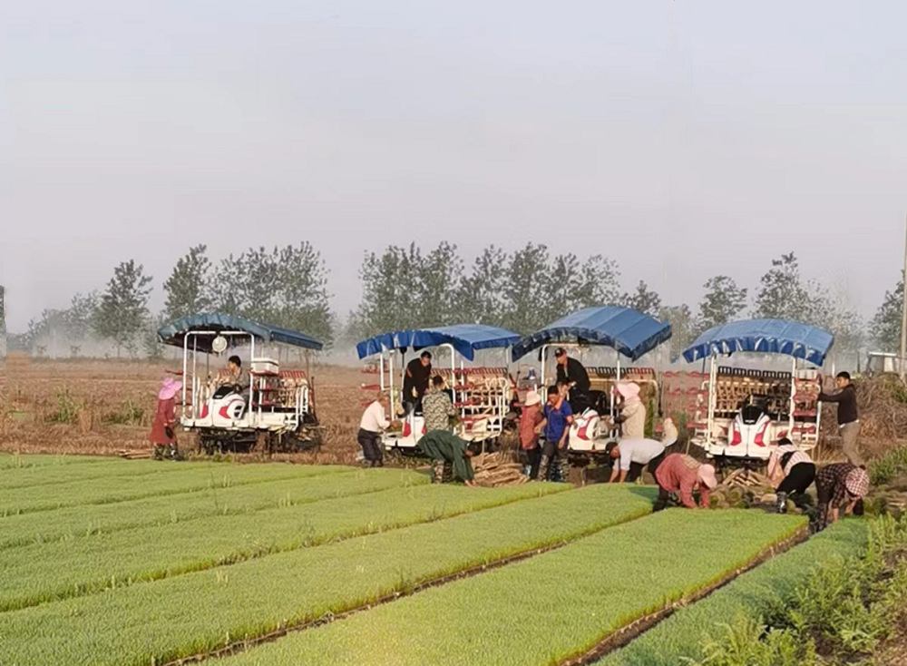 廣袤的農(nóng)田里,一臺(tái)臺(tái)高速插秧機(jī)在秧田中來(lái)回穿梭,伴隨著轟隆隆的機(jī)器聲,一排排蔥綠的秧苗被整齊地排列在稻田中間,不一會(huì)兒的工夫,為水田就披上了一襲綠色的新裝,秧苗隨風(fēng)搖曳,仿佛綠油油的翻騰的海洋。忙碌的人們,綠色的秧苗、穿梭田間的插秧機(jī)構(gòu)成了插秧季里最美的一道風(fēng)景。