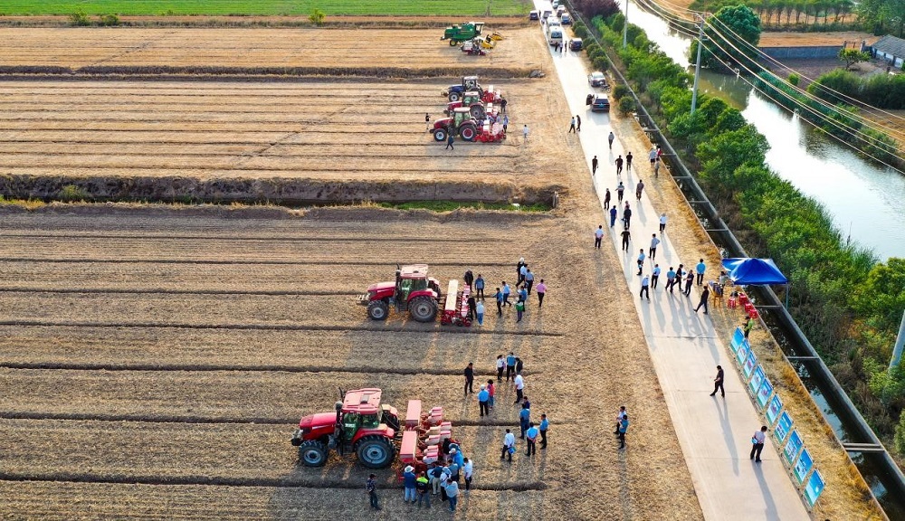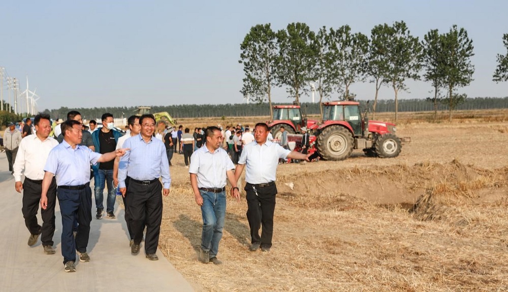 6月13日,江蘇省農(nóng)業(yè)技術(shù)推廣總站站長管永祥和省市相關(guān)農(nóng)業(yè)農(nóng)村部門負責人、科研院所專家一行80余人蒞臨蘇墾農(nóng)發(fā)黃海分公司觀摩指導。江蘇省農(nóng)墾集團有限公司農(nóng)業(yè)發(fā)展部部長劉衛(wèi)華、蘇墾農(nóng)發(fā)種植業(yè)管理中心總經(jīng)理徐啟來、黃海農(nóng)場公司主要領(lǐng)導等陪同。