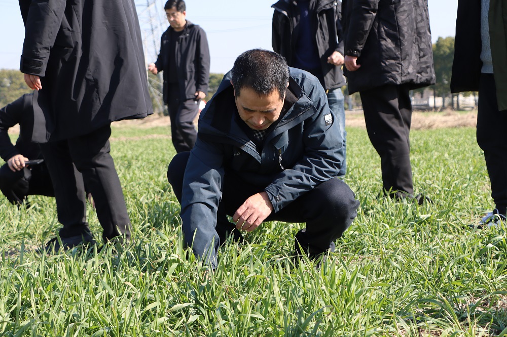 徐啟來一行先后深入蘇州蘇墾太倉吳中、張家港相城、吳江、昆山四個生產(chǎn)片區(qū)的十多個生產(chǎn)基地,現(xiàn)場考察了各基地在田小麥、油菜的生長情況,并就不同基地存在的問題進(jìn)行了全面分析,提出了不同的解決方案。他指出,蘇州蘇墾現(xiàn)階段要進(jìn)一步加強(qiáng)麥油作物的田間管理水平,重點(diǎn)把握好現(xiàn)有麥油的生長機(jī)遇,圍繞培肥促壯、雙減雙控等措施,積極謀劃產(chǎn)量提升各項(xiàng)措施,努力將生產(chǎn)技術(shù)落到細(xì)處、落到實(shí)處。他強(qiáng)調(diào),蘇州蘇墾今年要提前謀劃水稻布局工作,在水稻品種、種子質(zhì)量、田地平整、水利疏浚等方面狠下功夫,充分發(fā)揮蘇墾農(nóng)發(fā)規(guī)模化、標(biāo)準(zhǔn)化種植優(yōu)勢,提高田間管理水平,切實(shí)發(fā)揮示范引領(lǐng)作用,力爭今年糧食產(chǎn)量創(chuàng)新高。