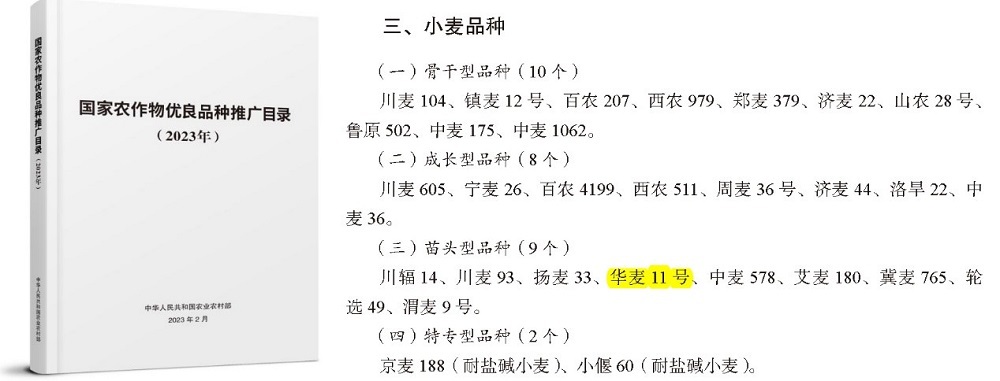 近日,農(nóng)業(yè)農(nóng)村部發(fā)布《國(guó)家農(nóng)作物優(yōu)良品種推廣目錄(2023年)》,重點(diǎn)推介10種農(nóng)作物、241個(gè)優(yōu)良品種,由蘇墾農(nóng)科院自主選育的華麥11號(hào)成功入選小麥苗頭型品種。