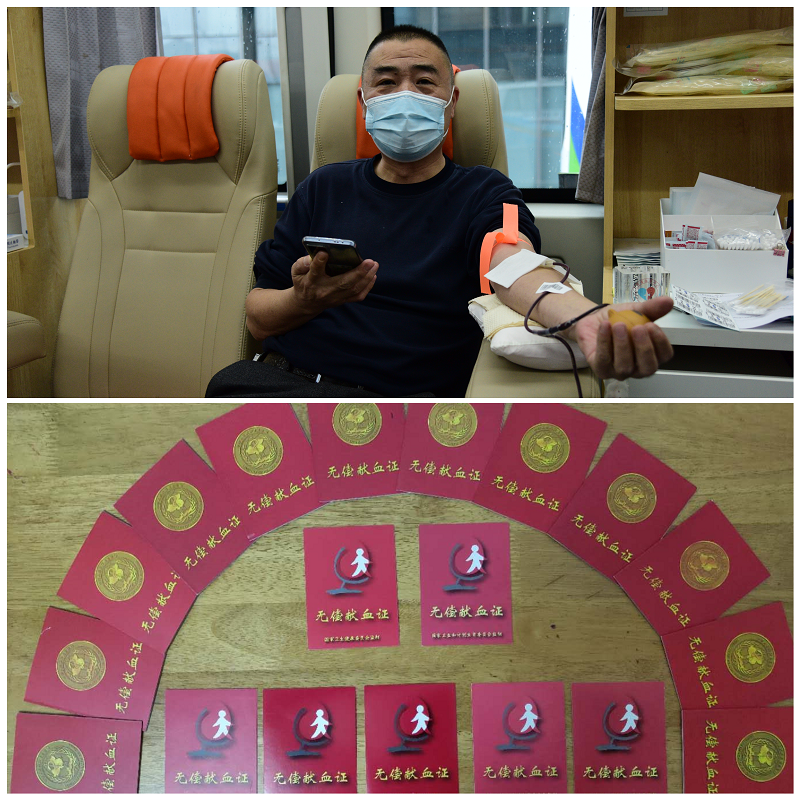 獻(xiàn)血車的空間不大,但大愛與奉獻(xiàn)在這里傳遞,暖流在這里流淌。正在獻(xiàn)血的汪海峰,是大華種業(yè)集團(tuán)的一名普通員工,他被許多人稱呼為“獻(xiàn)血達(dá)人”。多年來,他堅(jiān)持參與愛心獻(xiàn)血活動(dòng),積累起來的無(wú)償獻(xiàn)血證已經(jīng)超過20本,獻(xiàn)血總量達(dá)9600cc。他是首批“江蘇省無(wú)償獻(xiàn)血榮譽(yù)證”獲得者。“學(xué)雷鋒要見行動(dòng),力所能及、互幫互助嘛?!彼f,“我能夠通過自己的一點(diǎn)微薄之力就能幫助到需要的人,對(duì)我而言是一件很有意義的事?!泵鎸?duì)現(xiàn)場(chǎng)宣傳人員的鏡頭,他一直婉拒,幾經(jīng)堅(jiān)持才勉強(qiáng)配合拍下一張照片。