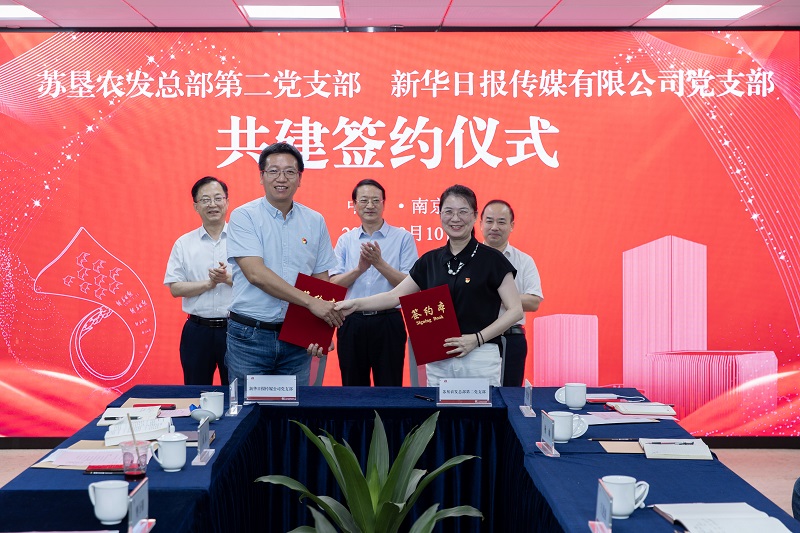 在新華日報傳媒有限公司黨支部書記、新華日報社(集團)編委、新華日報傳媒有限公司總經(jīng)理樊萬朝和蘇墾農(nóng)發(fā)黨委副書記、工會主席王進強與黨委委員、紀(jì)委書記朱江勝見證下,雙方支部簽訂了共建協(xié)議。