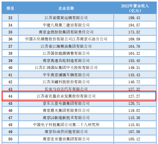南京市百強(qiáng)企業(yè)排行榜于2019年首次發(fā)布,從企業(yè)營收、增長率等維度對區(qū)域內(nèi)企業(yè)進(jìn)行綜合評價,蘇墾農(nóng)發(fā)2019年位列南京市百強(qiáng)企業(yè)第65名。今年,蘇墾農(nóng)發(fā)已連續(xù)五年再次入選南京市百強(qiáng)企業(yè),位列第44名。今年同時上榜的還有:大華種業(yè)位列2023年南京服務(wù)業(yè)企業(yè)100強(qiáng)第95名,蘇墾米業(yè)位列2023年南京服務(wù)業(yè)企業(yè)100強(qiáng)第56名,蘇墾農(nóng)服位列2023年南京服務(wù)業(yè)企業(yè)100強(qiáng)第82名以及2023年南京市成長型50強(qiáng)企業(yè)第28名。