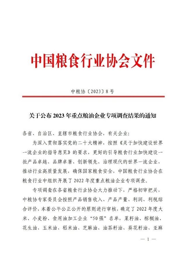 此次專項(xiàng)調(diào)查是在各省糧食行業(yè)協(xié)會(huì)大力推動(dòng)下,嚴(yán)格初審把關(guān),中糧協(xié)專家委員會(huì)按照產(chǎn)品銷售收入、產(chǎn)品產(chǎn)量、利潤(rùn)、利稅綜合評(píng)價(jià),本著公平公正公開的原則進(jìn)行了審核。此次入圍50強(qiáng)名單的企業(yè),為產(chǎn)品銷售收入達(dá)到1億元以上的大米加工企業(yè)、小麥粉加工企業(yè)、食用植物油(含大豆油、菜籽油、棕櫚油等大宗油脂及食用調(diào)和油)加工企業(yè),且在最近三年內(nèi)未發(fā)生過(guò)質(zhì)量安全問(wèn)題。