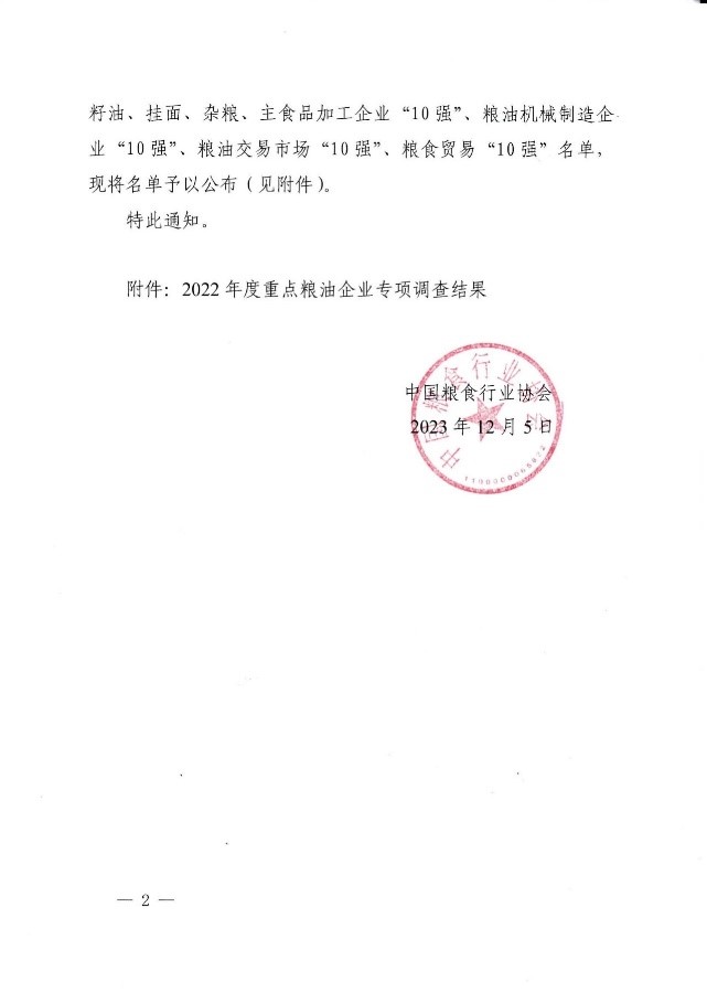 近日,我國(guó)2022年度大米、小麥粉、食用油加工企業(yè)“50強(qiáng)”名單,菜籽油、棕櫚油、花生油、玉米油、稻米油、芝麻油、油茶籽油、葵花籽油、亞麻籽油、掛面、雜糧、主食品加工企業(yè)“10強(qiáng)”、糧油機(jī)械制造企業(yè)“10強(qiáng)”、糧油交易市場(chǎng)“10強(qiáng)”、糧食貿(mào)易“10強(qiáng)”名單確定出爐。