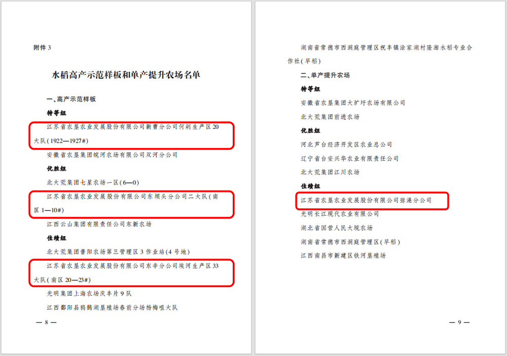 近日,農(nóng)業(yè)農(nóng)村部農(nóng)墾局聯(lián)合中國農(nóng)林水利氣象工會公布了2023年全國農(nóng)墾提單產(chǎn)“大比武”勞動競賽結(jié)果,經(jīng)測產(chǎn)驗收、綜合評審,共評選出48個高產(chǎn)示范樣板和47個單產(chǎn)提升農(nóng)場。蘇墾農(nóng)發(fā)6個示范田入選高產(chǎn)示范樣板、3家分公司入選單產(chǎn)提升農(nóng)場。