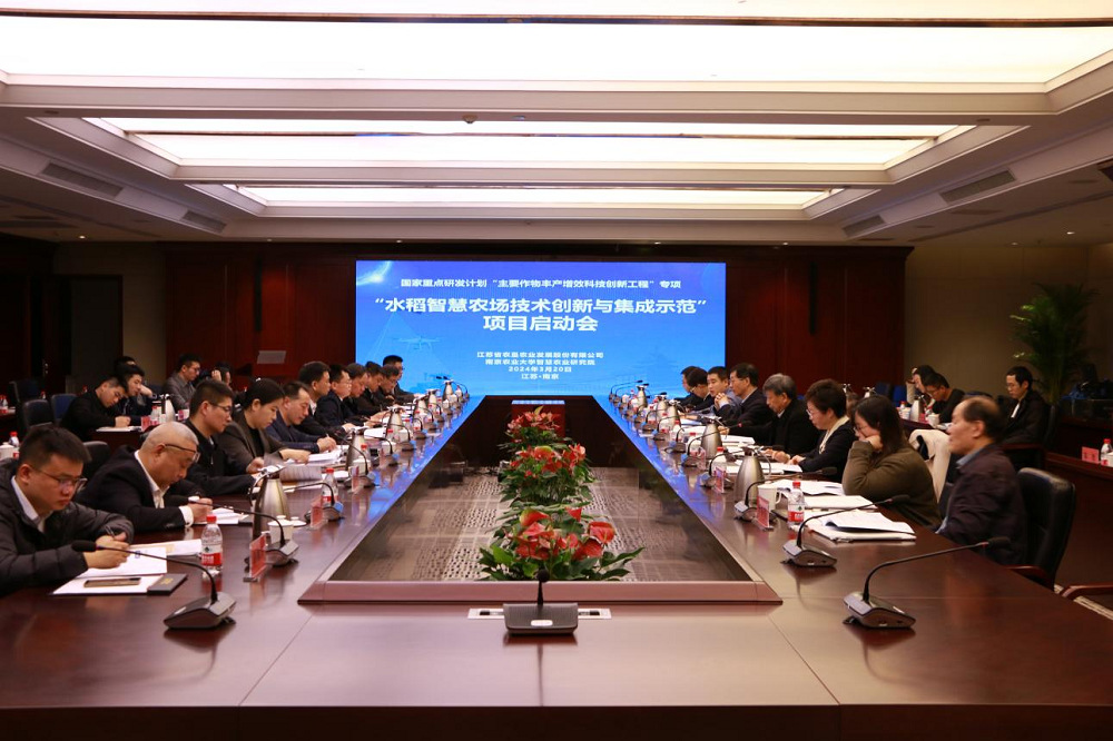 3月20日,由江蘇省農(nóng)墾農(nóng)業(yè)發(fā)展股份有限公司牽頭,南京農(nóng)業(yè)大學(xué)、揚(yáng)州大學(xué)、中國(guó)農(nóng)業(yè)科學(xué)院、東北農(nóng)業(yè)大學(xué)、北京市農(nóng)林科學(xué)院、農(nóng)業(yè)農(nóng)村部南京農(nóng)業(yè)機(jī)械化研究所、上海聯(lián)適導(dǎo)航等單位共同承擔(dān)的“十四五”國(guó)家重點(diǎn)研發(fā)計(jì)劃“主要作物豐產(chǎn)增效科技創(chuàng)新工程”重點(diǎn)專項(xiàng)“水稻智慧農(nóng)場(chǎng)技術(shù)創(chuàng)新與集成示范”項(xiàng)目(2023YFD2300500 )啟動(dòng)會(huì)在南京順利召開。
