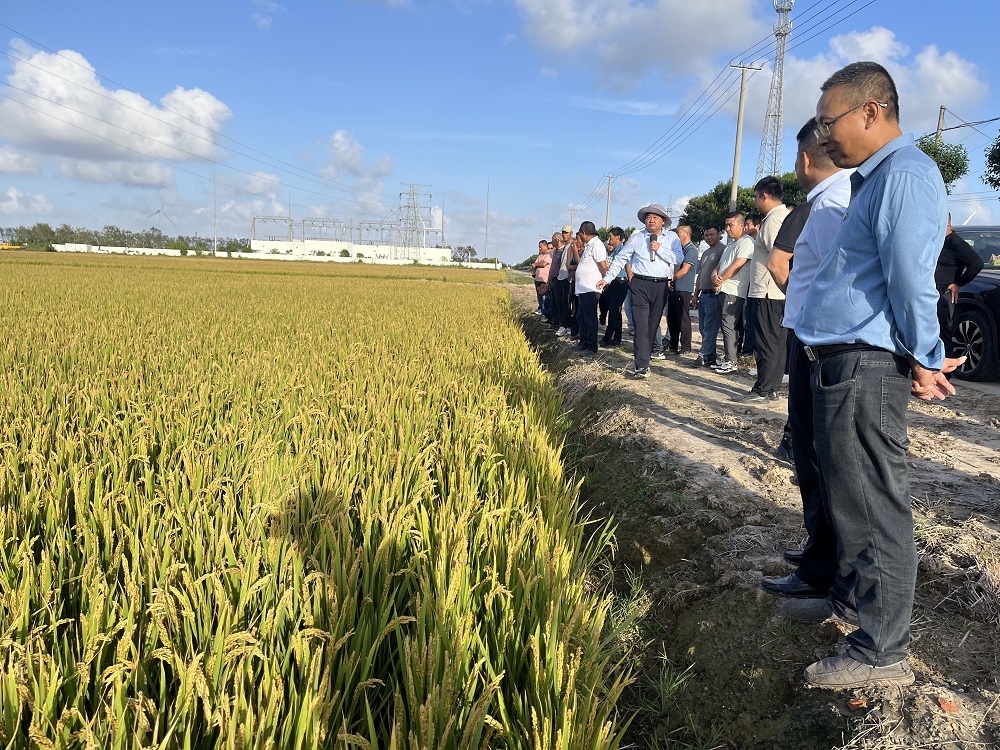 在逐一探訪各個生產(chǎn)區(qū)的過程中,各單位不僅深入交流了對農(nóng)業(yè)生產(chǎn)的深刻見解與獨特視角,還積極分享了各自有望實現(xiàn)高產(chǎn)的作物品種信息。這一系列分享與交流,不僅加強了各單位之間的合作與共贏,更充分展現(xiàn)了水稻生產(chǎn)領(lǐng)域的巨大潛力與廣闊發(fā)展前景。特別是在最后參觀臨海分公司第四生產(chǎn)區(qū)的高產(chǎn)品種時,其卓越的產(chǎn)量與品質(zhì)贏得了廣泛的贊譽與高度關(guān)注。觀摩過程中,大家或駐足觀察,或低頭沉思,或熱烈討論,共同探尋水稻高產(chǎn)的奧秘與有效途徑。這種跨區(qū)域的深入探討與交流,無疑為淮海農(nóng)業(yè)生產(chǎn)的發(fā)展注入了新的活力與動力。