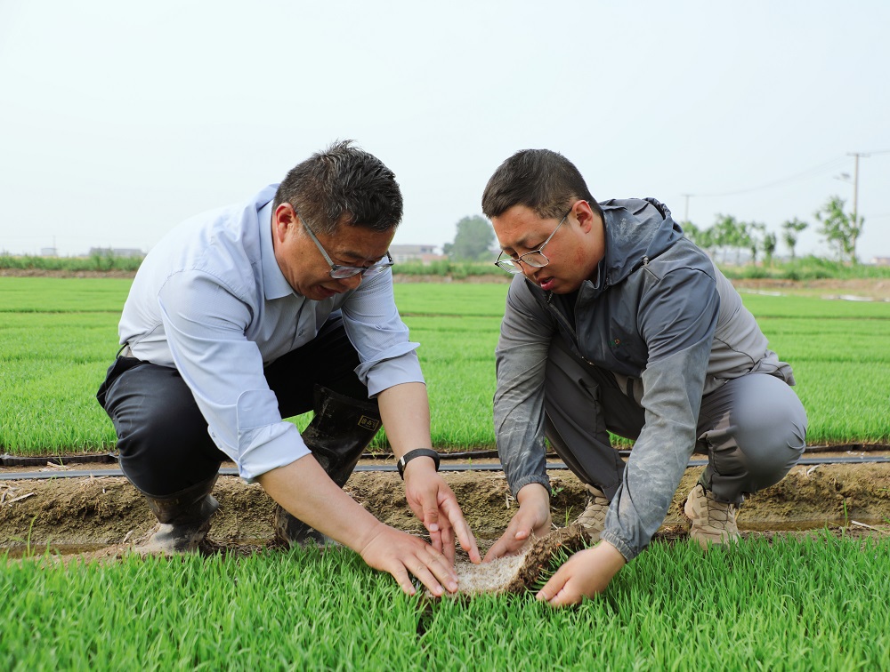 端午時(shí)節(jié),蘇墾農(nóng)發(fā)東辛分公司托管基地的水稻秧田生機(jī)勃勃。今年,托管基地1.2萬(wàn)畝水稻全部推廣微噴灌育秧技術(shù),實(shí)現(xiàn)技術(shù)全覆蓋,標(biāo)志著傳統(tǒng)水稻育秧向節(jié)水高效模式的跨越。